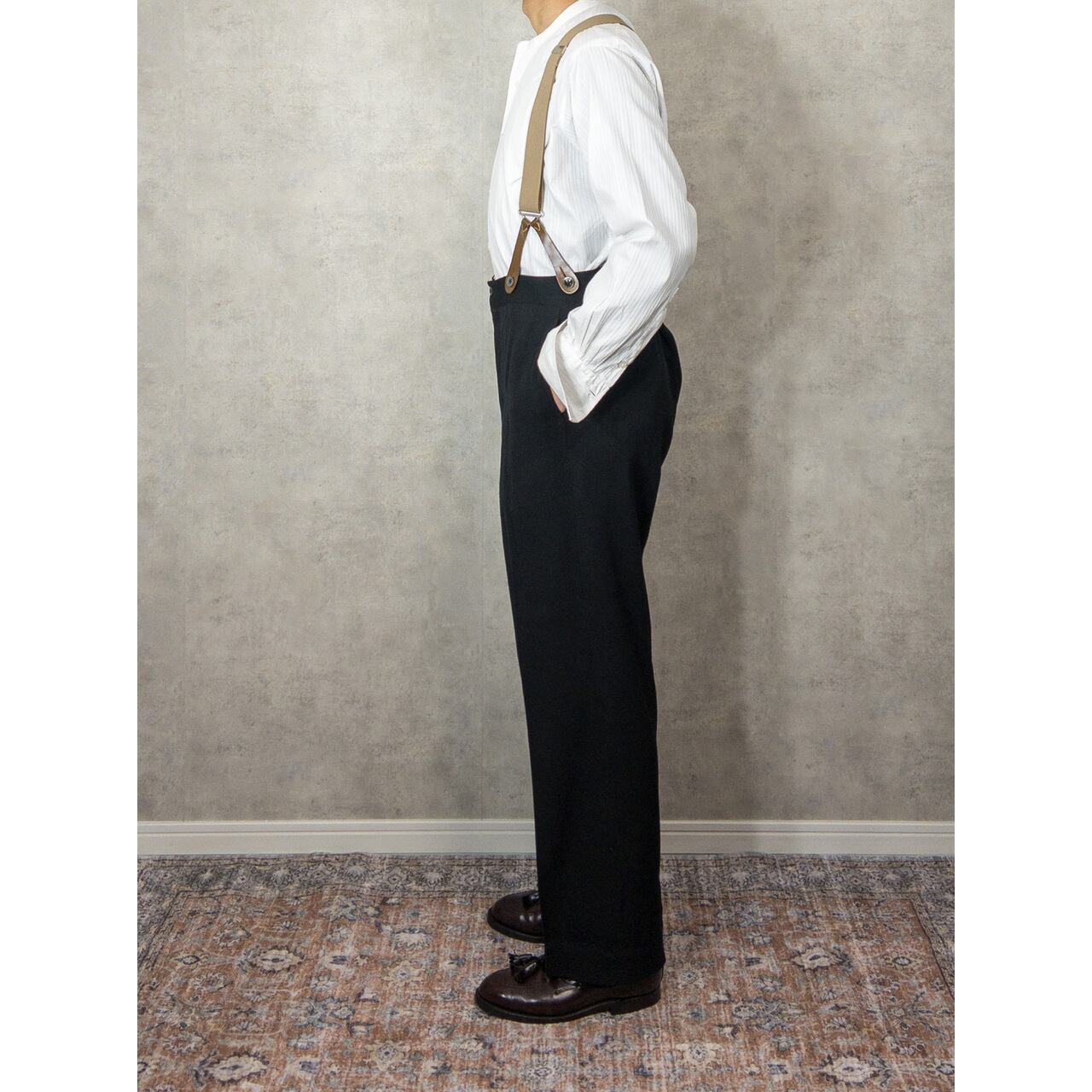 【1940-50s】"French Vintage" Black Wool Dress Trousers with Cinch Back