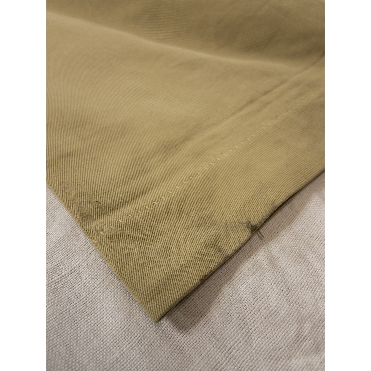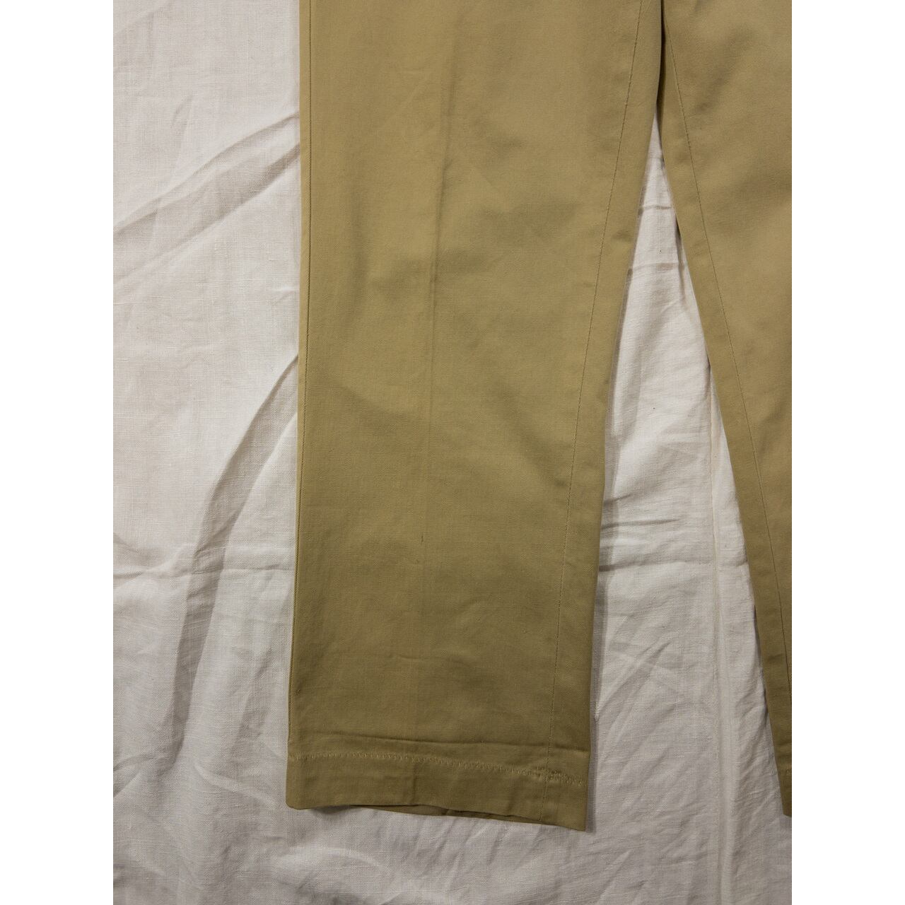 やはりチノらしく、ガシッとしたコットンツイル生地が特徴的で、どちらかといえばイギリスのチノトラウザーズでよく使われる生地感に近いかと。