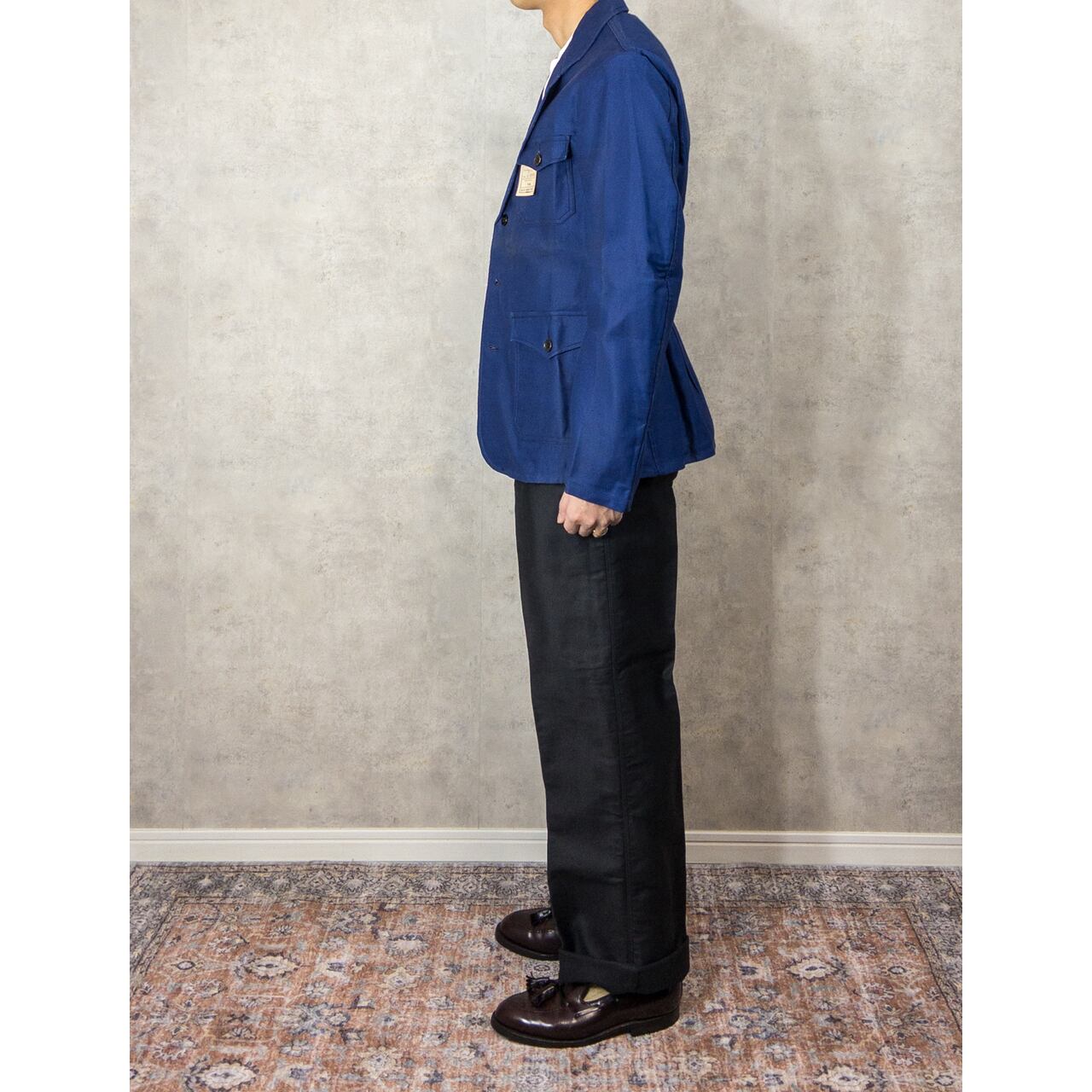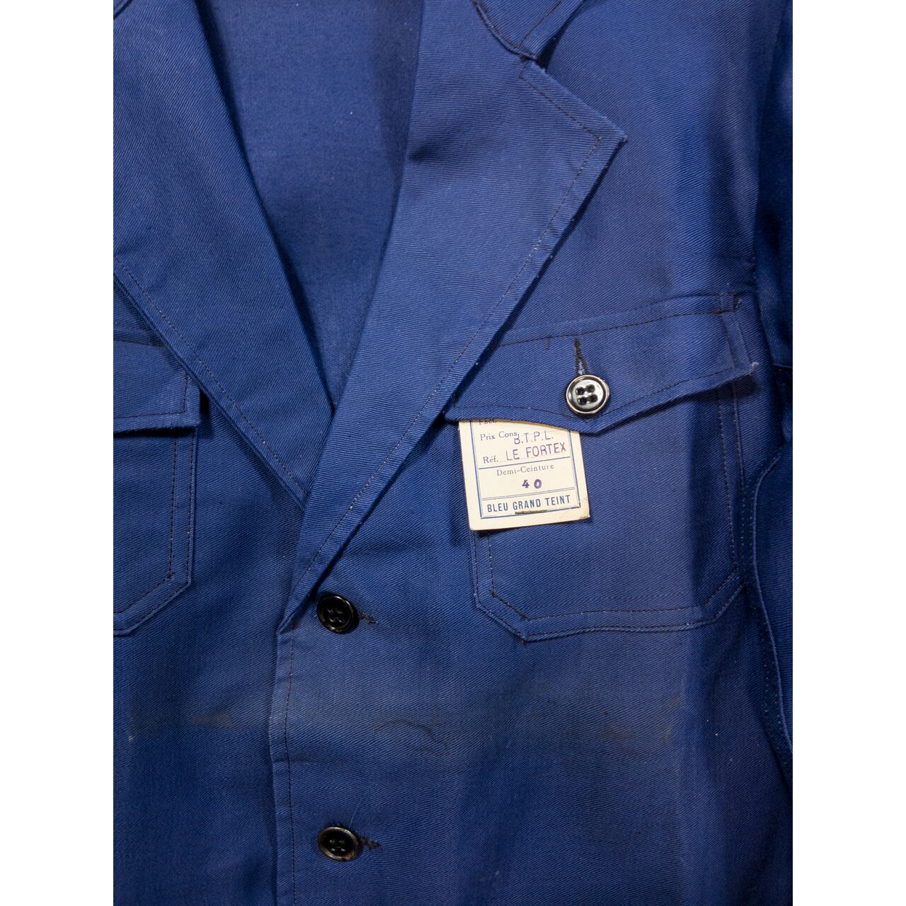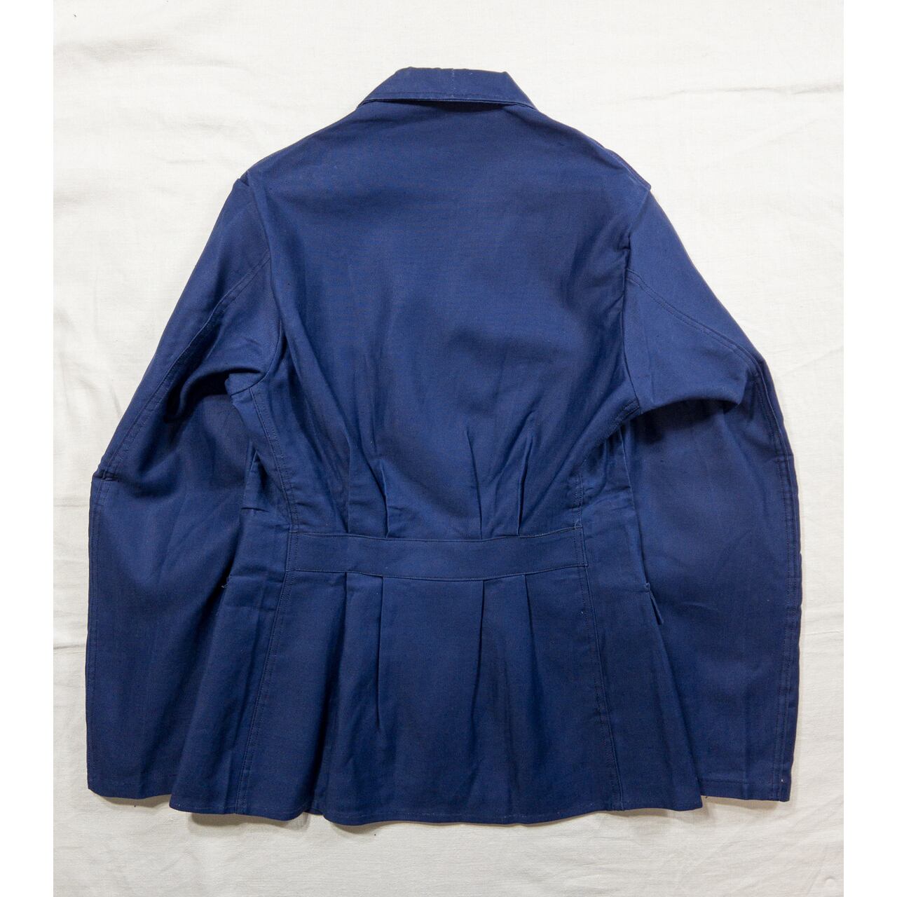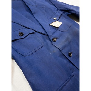 【1940s】"Le Fortex" French Blue Thin Twill 4 Pockets Lapeled Work Jacket with Metal Buttons, Deadstock!!