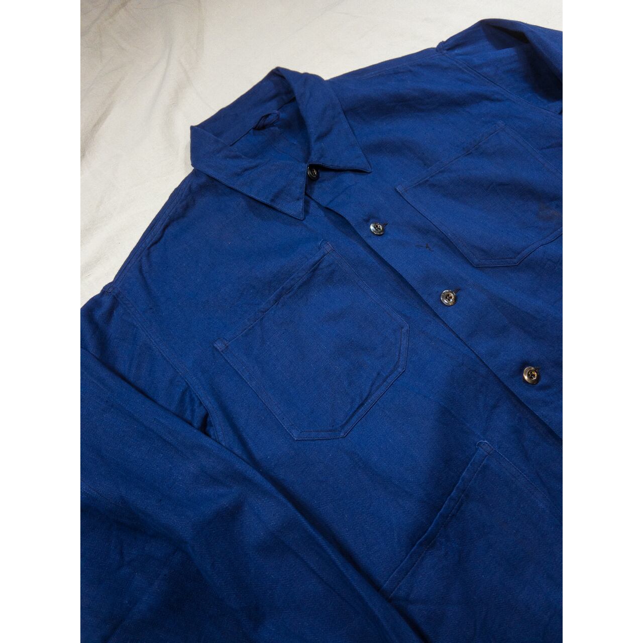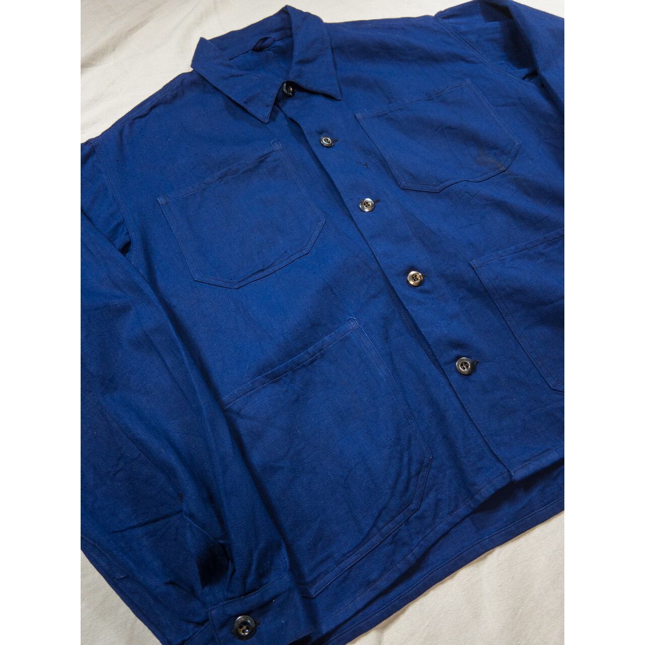 【1950s】"Euro Vintage" Cotton HBT Blue Work Jacket with Metal Buttons!!