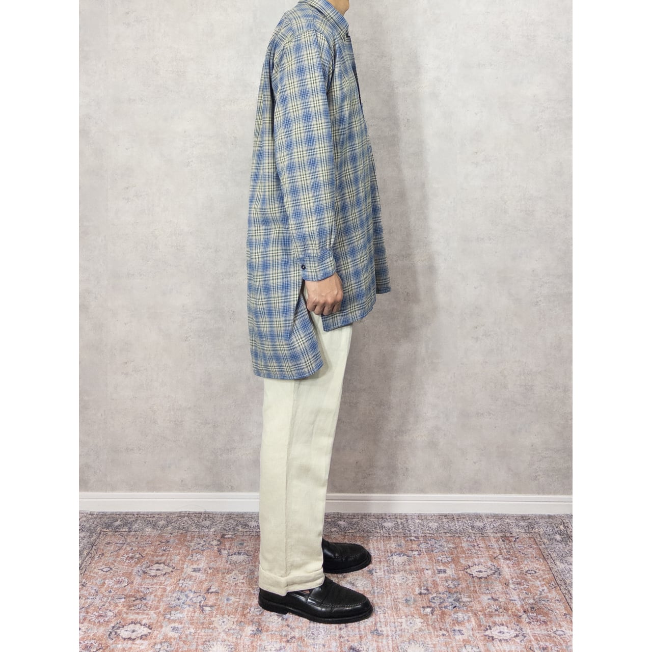 【1950-60s】"French Vintage" Blue×Green Check Grandpa Shirt