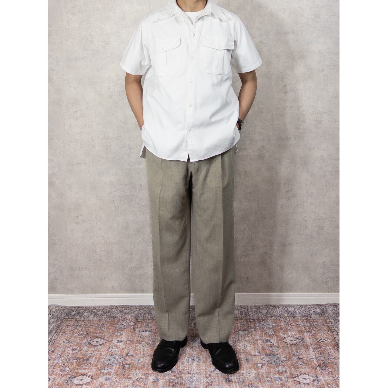 【1940s】"Marine Nationale" French White Cotton Short Sleeved 2 Pockets Officer Shirt