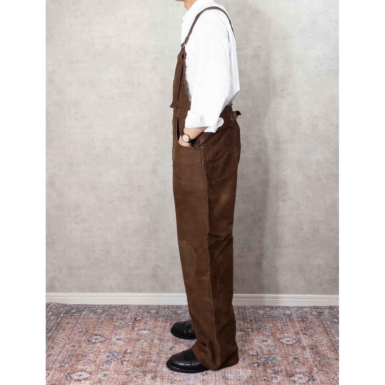 こちらは1930年代頃のLe Mont St Michel製ブラウンモールスキンオーバーオールになります。