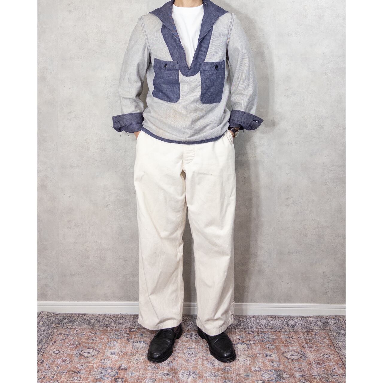 一方、生地については年代毎にアップデートを繰り返し、様々な生地パターンのセーラーシャツが存在します。今回は60-70年代頃から採用されるようになったデニム生地のセーラーシャツ。