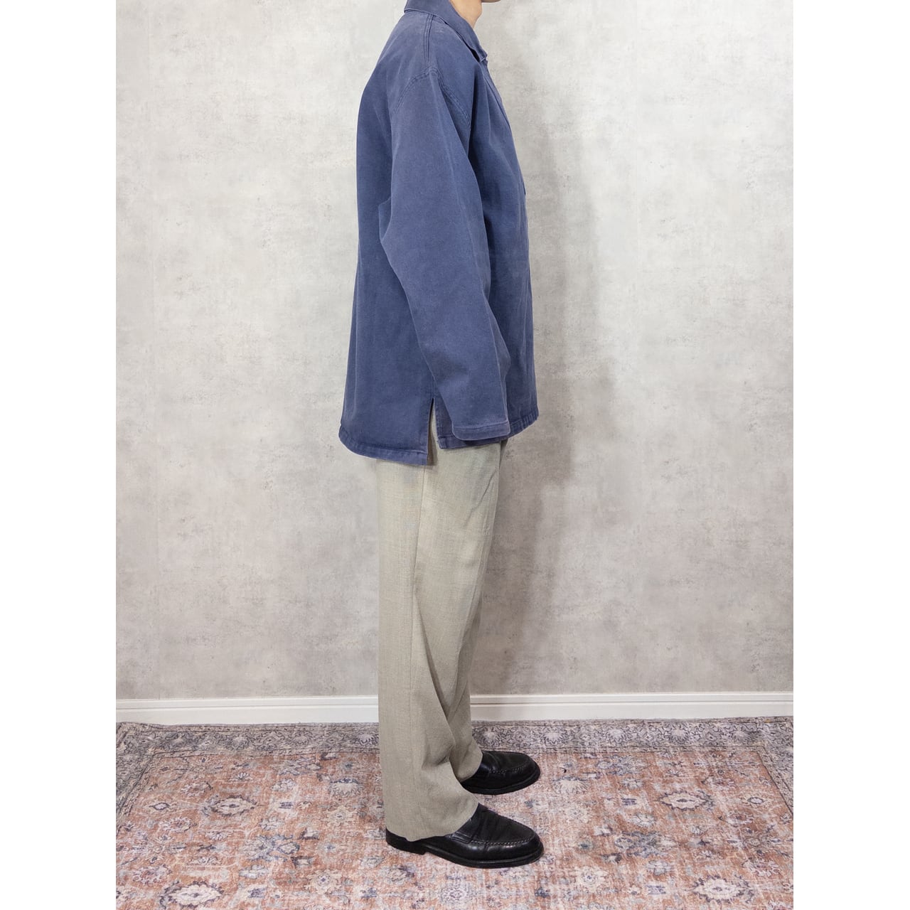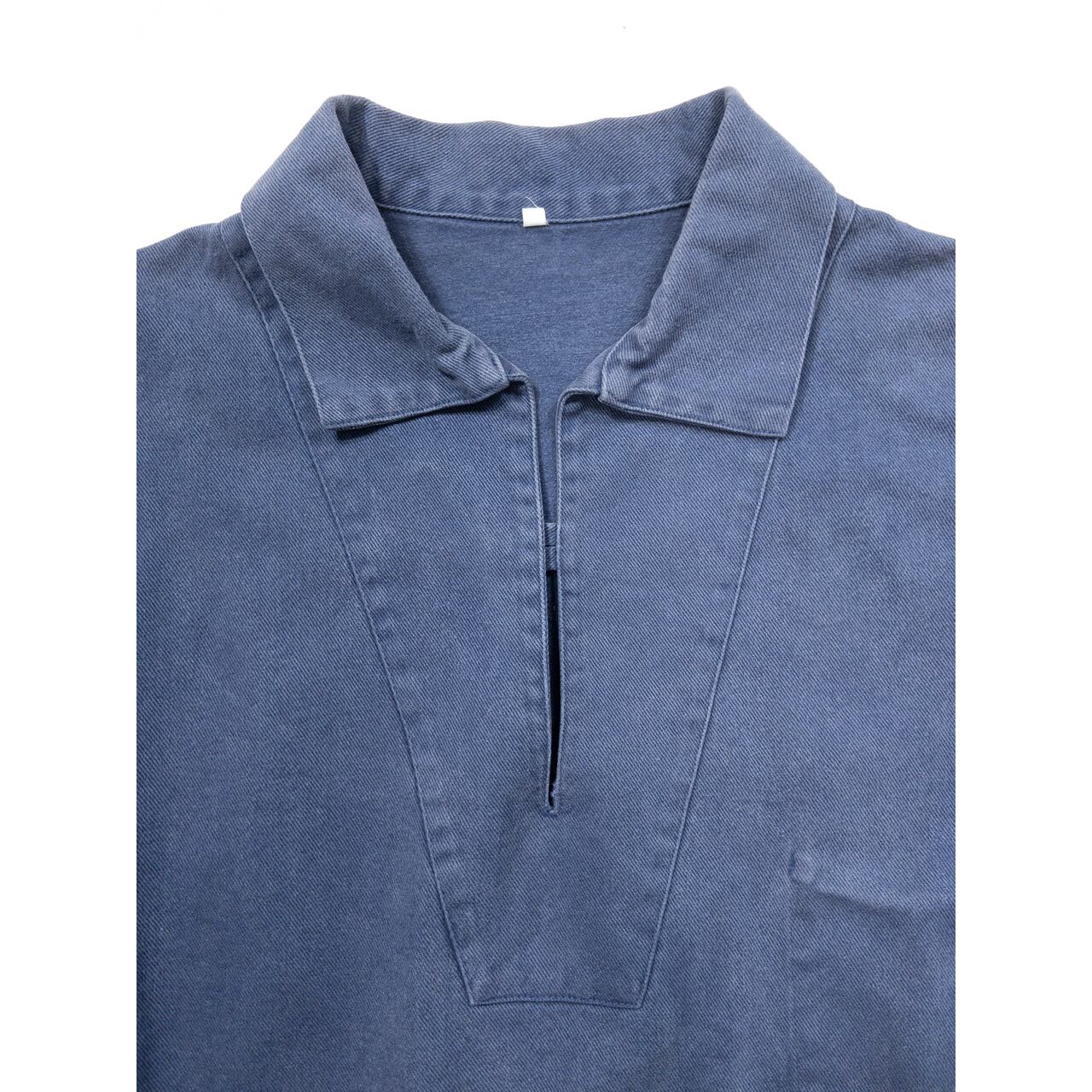 【1980s】"French Vintage" Blue Cotton Twill Fisherman Smock Shirt