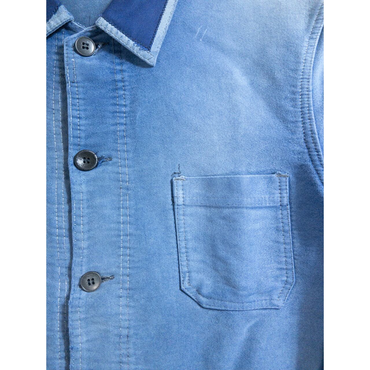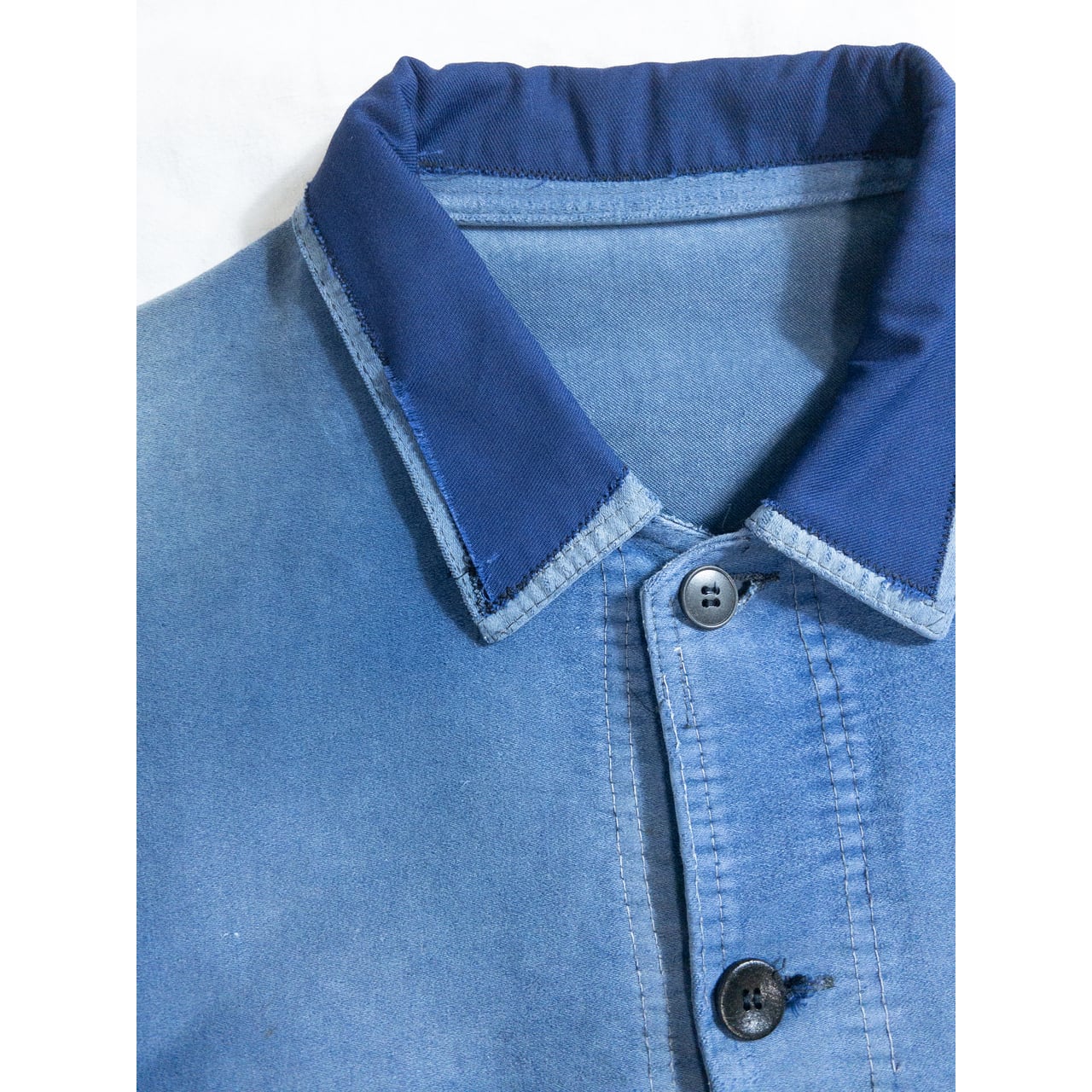 1960s "French Vintage" Faded Blue Moleskin Work Jacket with 2 Tone Collar