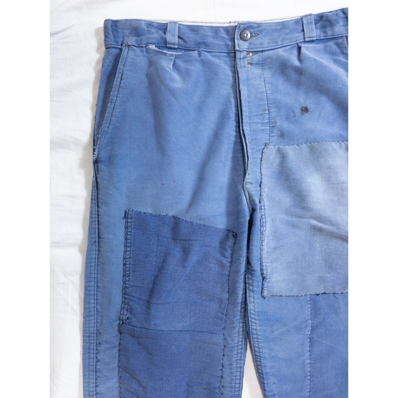 1950s "Tigra" French Faded Blue Moleskin Patch Work Trousers