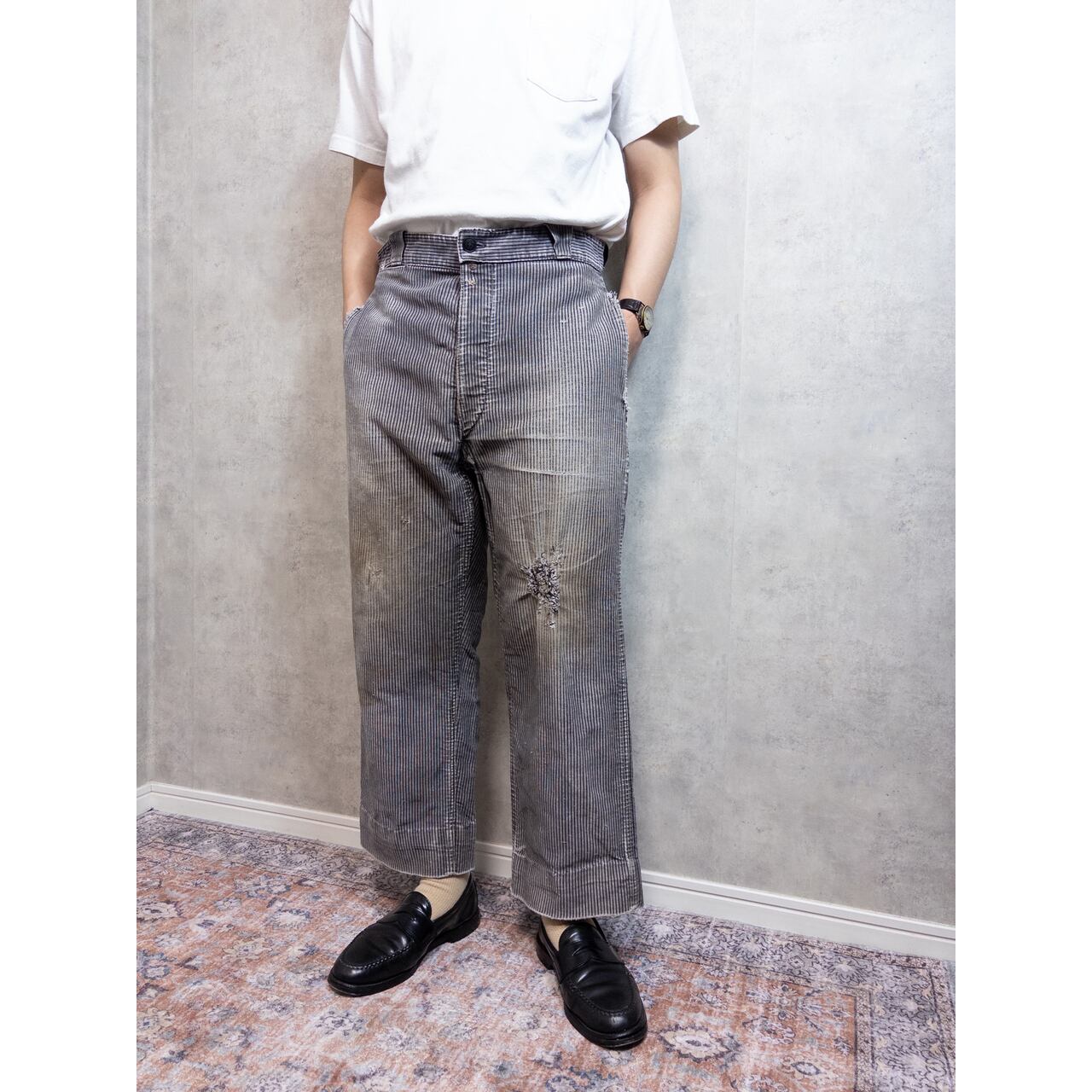 1930-40s "Le Chamonix" French Print Moleskin Stripe Work Trousers