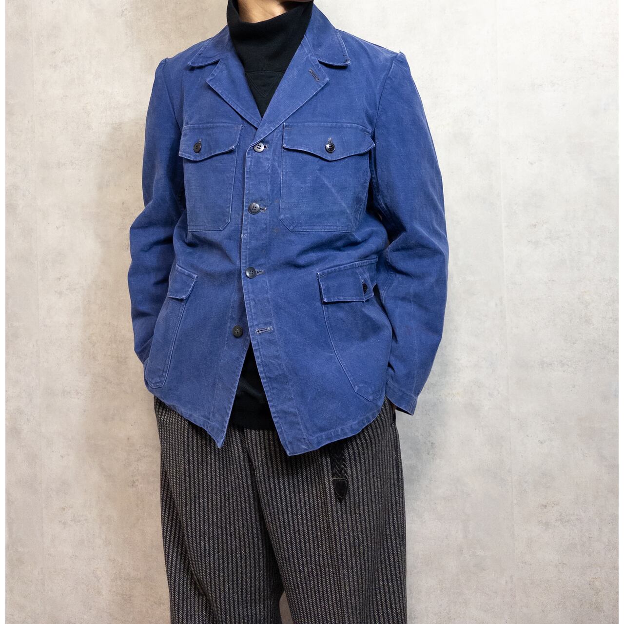 こちらは1940-50年代頃のフランス製ブルーコットンツイルワークジャケットになります。