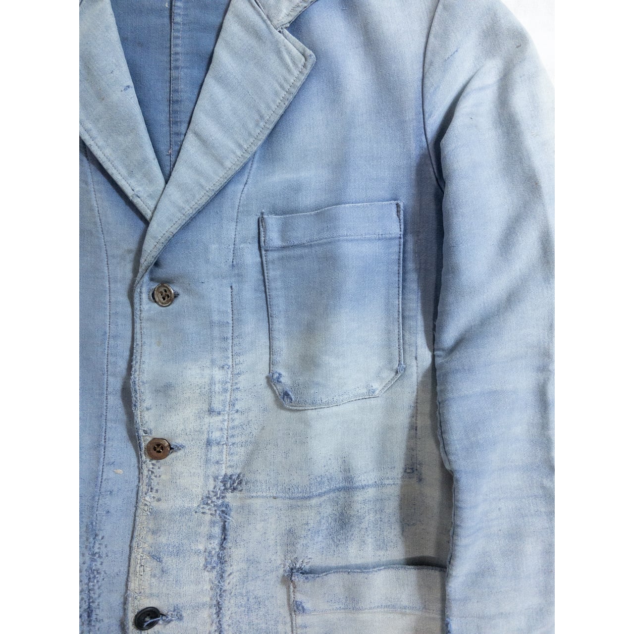 1940s "Le Chamonix" French Faded Blue Moleskin Lapeled Work Jacket