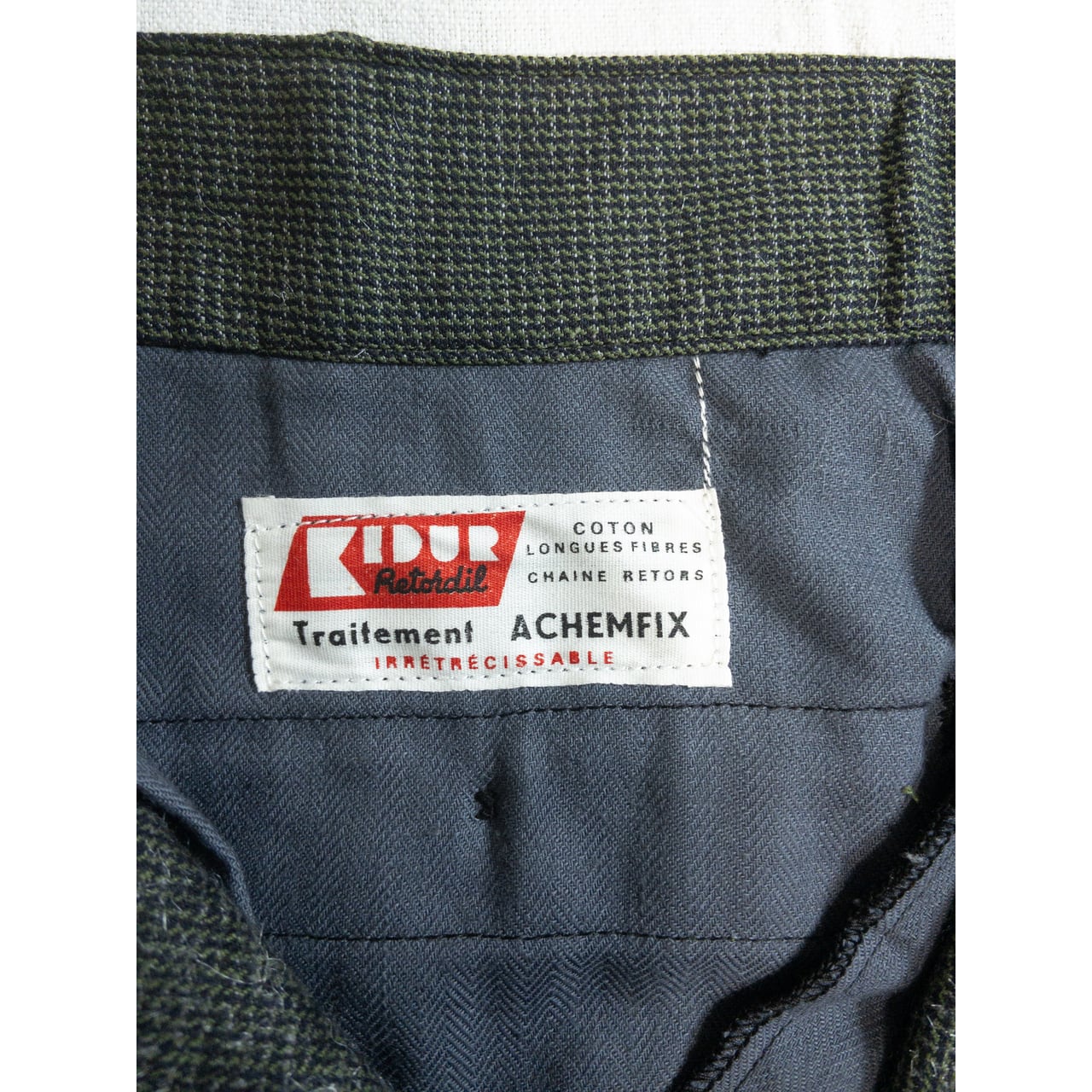 1950-60s "Kidur" French Green × Black Micro Check Work Trousers, Dead Stock