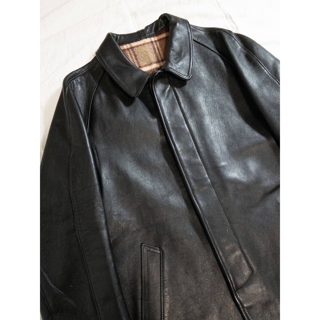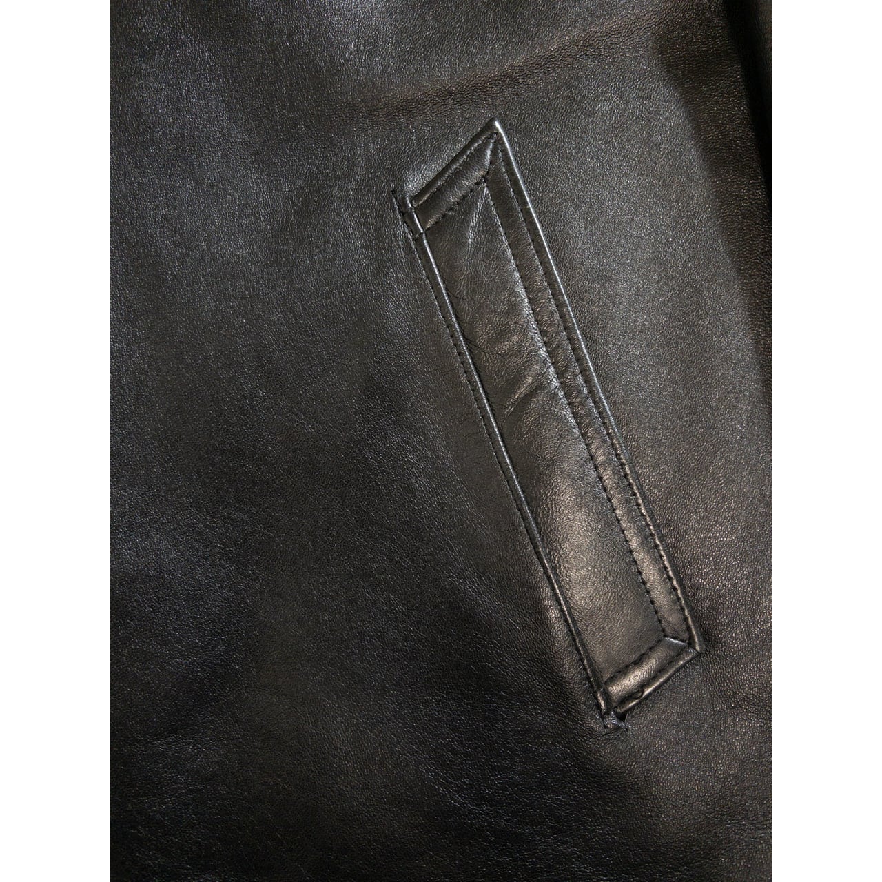 ボタンは比翼仕様で、すっきりとした印象。レザーアイテムの良し悪しを左右するとも言えるステッチも美しく、ステッチ自体が一つのデザインのように見え、縫製の良さが伺えます。