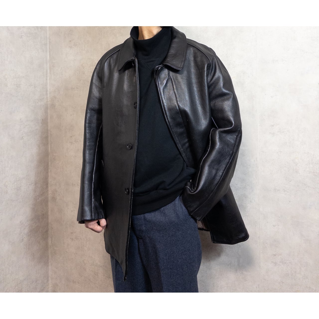 ミドル丈ですのでジャケット兼レザーコートのような着こなしをお楽しみいただけるサイズ感かと思います。