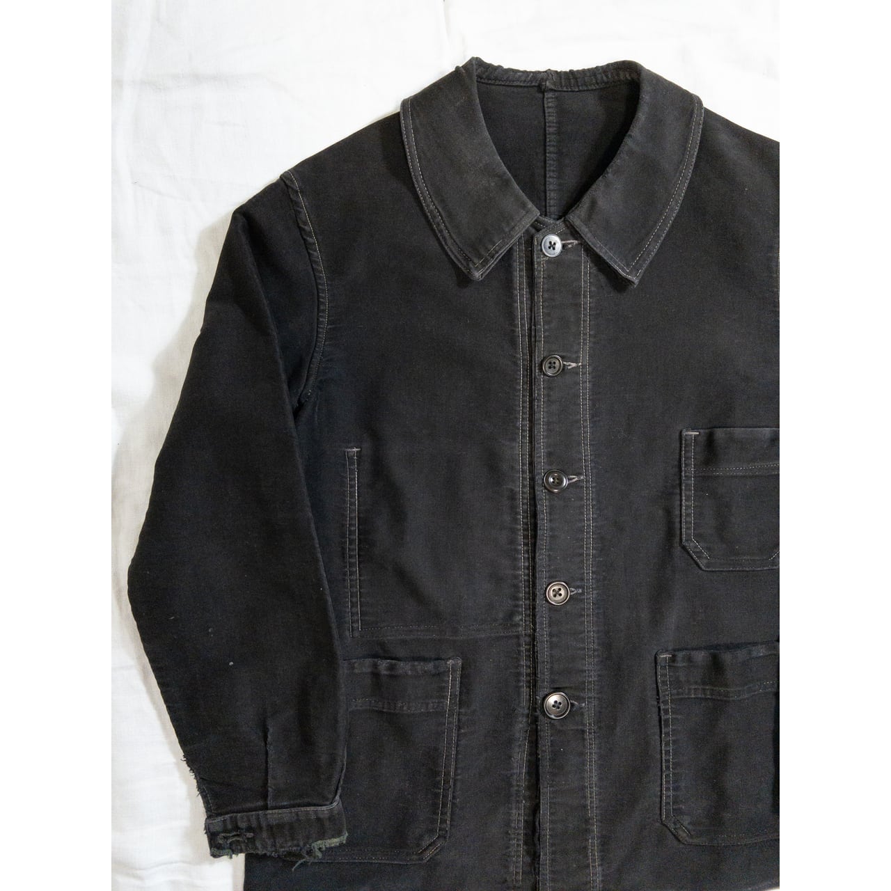 1940s "Le Favori" French Faded Black Moleskin Work Jacket