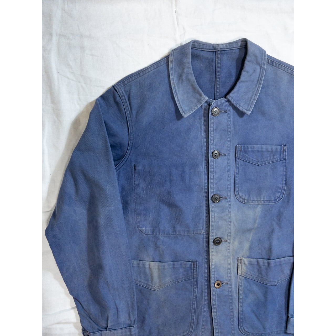 1950s "Adolphe Lafont" Faded Blue Cotton Twill Work Jacket with V Pockets