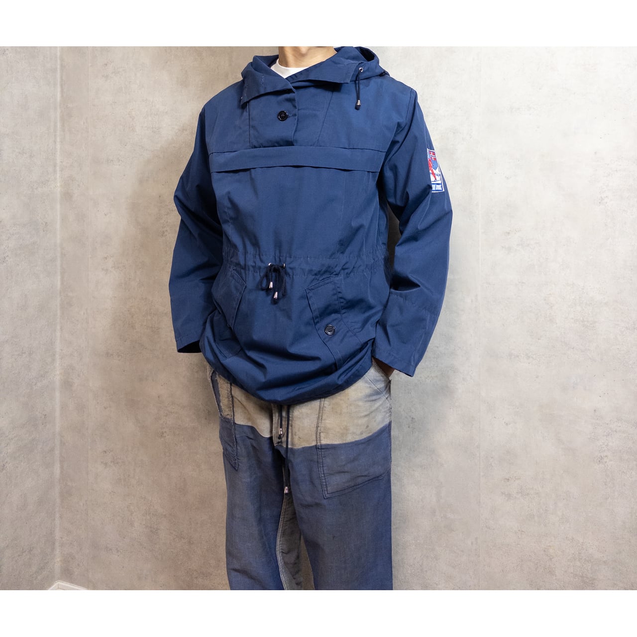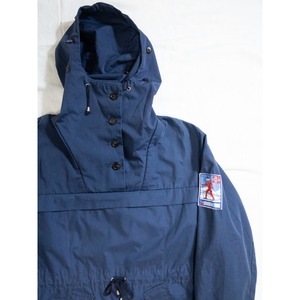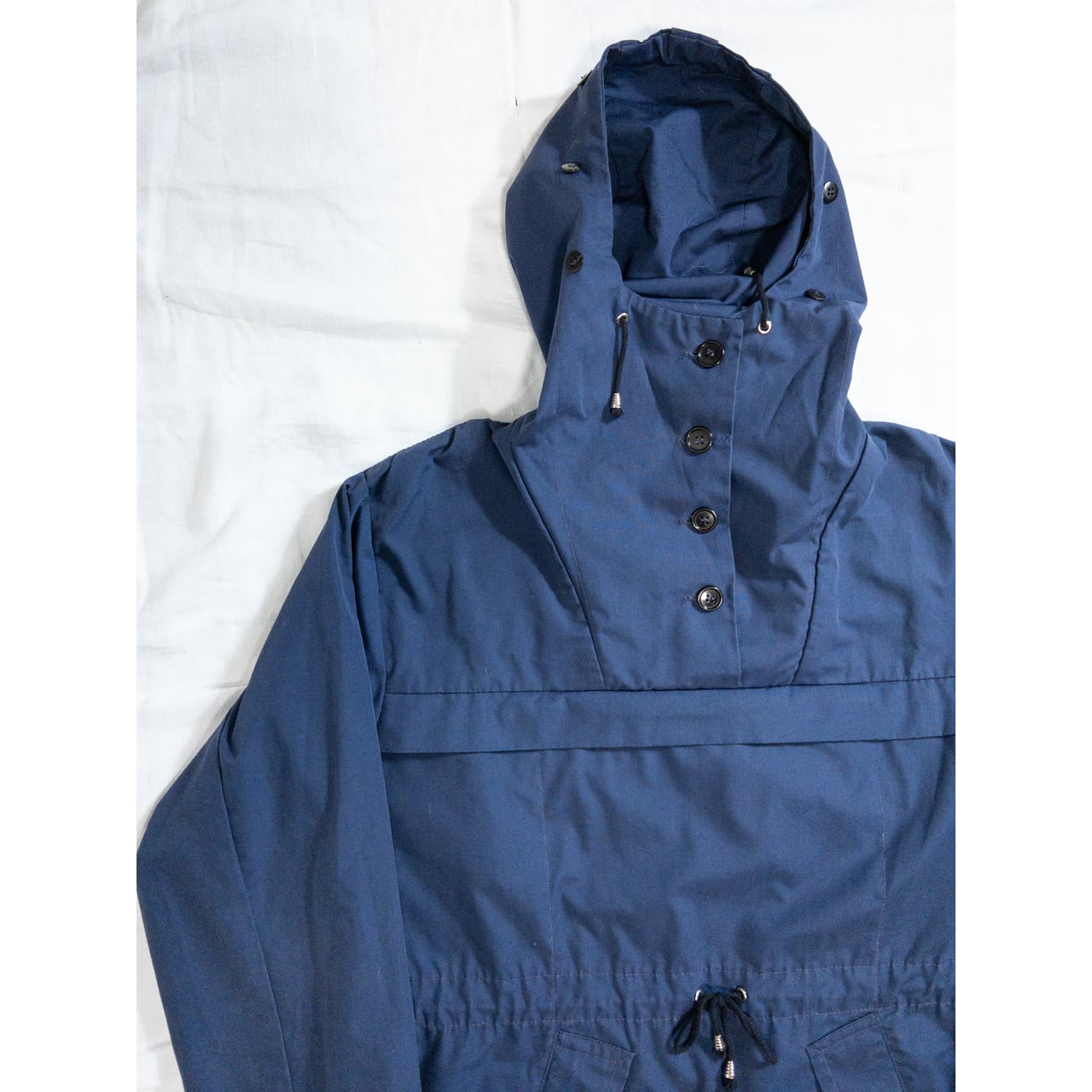 深いネイビーカラーで襟元のボタンが特徴的なアノラックパーカが入荷いたしました。