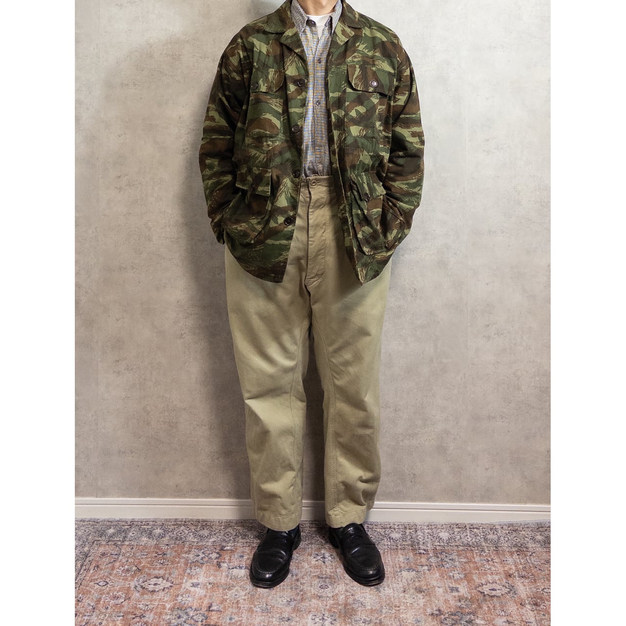 こちらは1950-60年代頃のフランス製リザードカモジャケットになります。