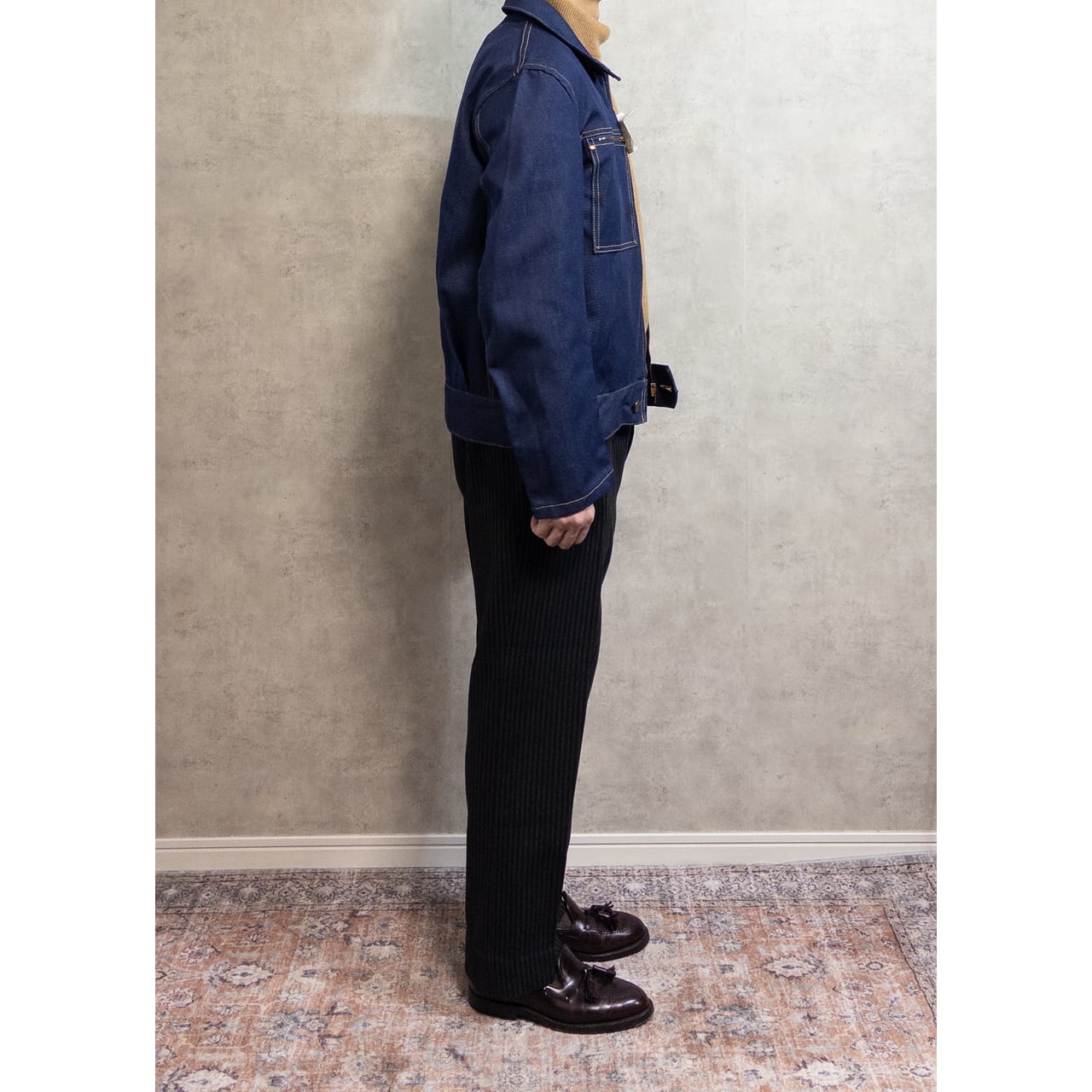 ディテールとしてはインディゴブルーのデニム生地に良く映えるイエローステッチとゴールドジップが特徴的。